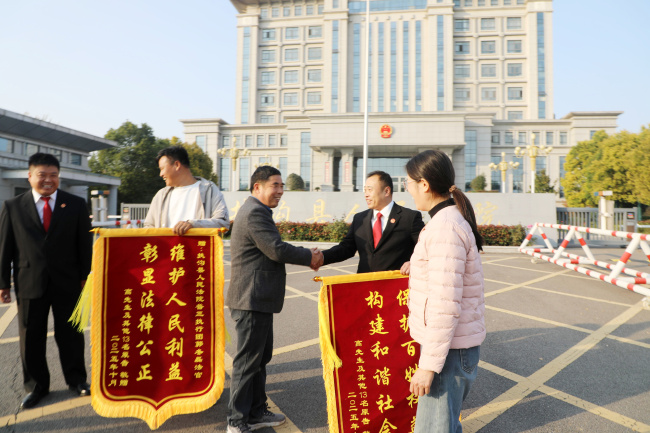 案件得以全部执行完毕,53万元工资款第一时间发放到13名农民工手中。接过沉甸甸的劳动所得,农民工兄弟们脸上绽放出久违的笑容。被执行人高某也如释重负,心中积压多日的石头终于落地。为表达由衷的谢意,他主动带领本村13名农民工,将凝聚着感激之情的锦旗郑重赠予扶沟法院执行干警。