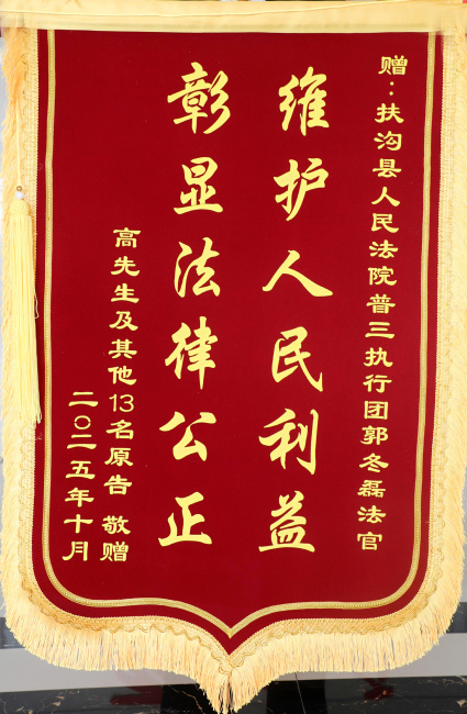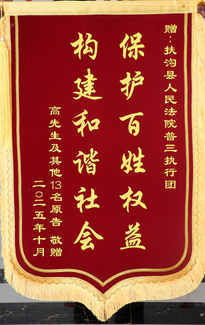 近日,扶沟县人民法院出现了感人一幕:13名农民工在案件被执行人高某的带领下,专程来到法院执行局,将两面鲜红的锦旗送到执行干警手中,感谢法院为他们追回了拖欠多日的劳务报酬。这一特殊场景,背后是执行干警倾力为民、高效执行的动人故事。