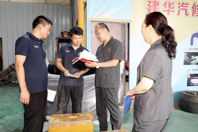 普法服务队的第二站来到了某汽车修理厂。干警们实地查看了企业的经营场所和生产流程,与企业负责人及管理人员展开了深入的座谈交流。座谈中,企业负责人坦诚地提出了在合同纠纷、债权债务、企业经营范围等方面遇到的法律困惑。法院干警们结合审判实践,逐一进行了专业、细致的解答,帮助企业分析潜在的法律风险,并就如何完善内部管理制度、规范交易合同、有效应对诉讼等提出了具体的司法建议。同时,再次向企业赠送了实用法律书籍,鼓励企业善于运用法律武器维护自身合法权益。