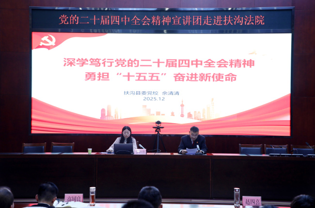 为深入学习贯彻党的二十届四中全会精神,12月11日下午,扶沟县人民法院举办专题辅导报告会,邀请县委宣讲团成员、县委党校讲师余清清作专题辅导。党组书记、院长吴冀原及班子成员、各部门干警代表参加报告会。会议由党组成员、政治部主任赵四喜主持。