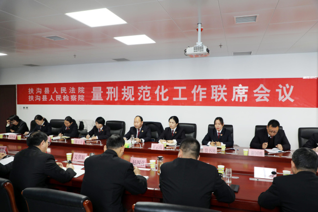 为深入贯彻落实宽严相济刑事政策,进一步统一司法尺度,提升刑事办案质效,1月21日上午,扶沟县人民法院与扶沟县人民检察院联合召开量刑规范化工作联席会议。县法院党组书记、院长吴冀原,县检察院党组书记、检察长韩中华出席会议并讲话。双方班子成员、法院刑事审判庭及知识产权审判庭全体员额法官、检察院刑事检察部门全体员额检察官参加了会议。