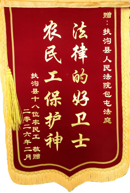 春节将至,年味渐浓。当千家万户都在期盼着团圆与喜悦时,让每一位为城市发展付出汗水的劳动者都能带着工资回家过年,是扶沟法院法官心头最大的牵挂。近日,一面鲜红的锦旗送到了扶沟法院卢清泉庭长的手中,上书“法律的好卫士 农民工保护神”几个烫金大字,它不仅承载着十八位农民工兄弟最真挚的谢意,也映照出人民法官司法为民的拳拳初心。