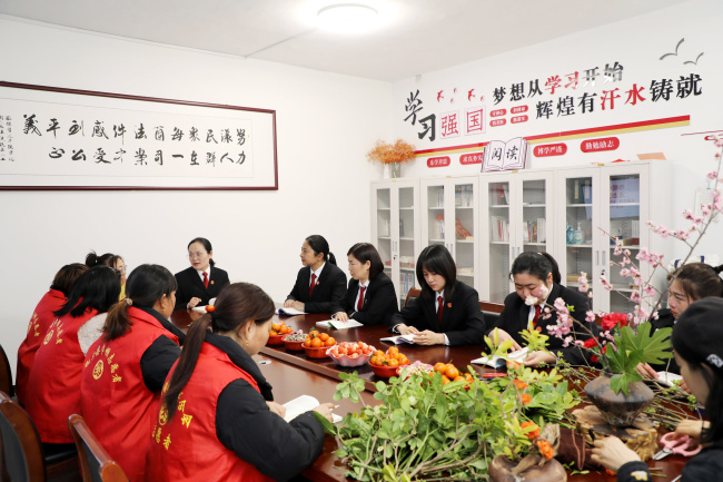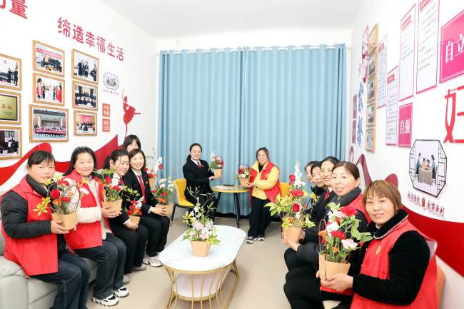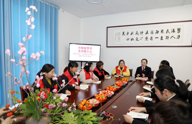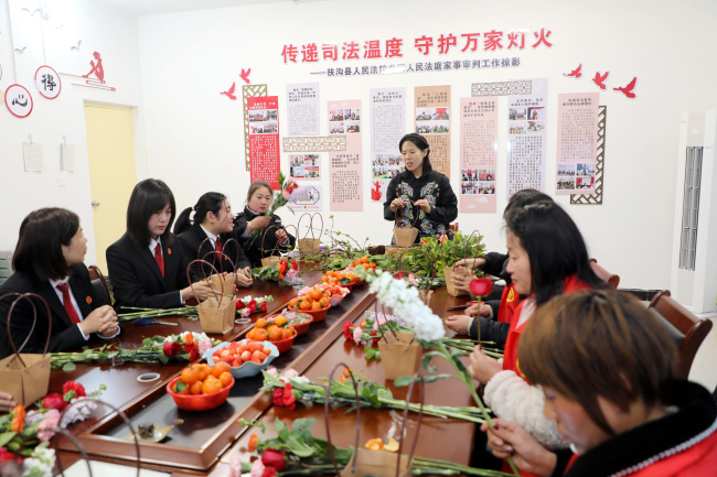 阳春三月,法暖人心。在第116个“三八”国际妇女节来临之际,3月6日下午,扶沟县人民法院韭园人民法庭联合韭园镇妇联,在人民法庭内举办了一场别开生面的“巾帼绽芳华 法治暖人心”主题活动。韭园法庭全体干警与镇妇联代表欢聚一堂,以书香浸润心灵,用花艺点缀生活,共同庆祝属于女性的美好节日。